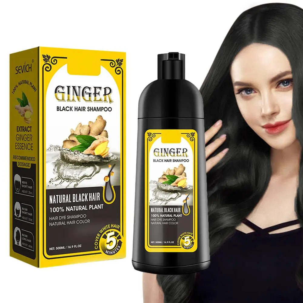 500ml Hair Color Shampoo Black Hair Dye Covering White Hair Shampoo Coconut Ginger Black Hair Dye Fast Hair Dye Cream Styling