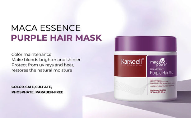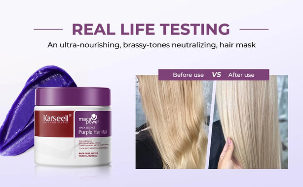 Karseell Purple Hair Mask neutralizes brassiness in blonde shades for high quality at-home hair care.