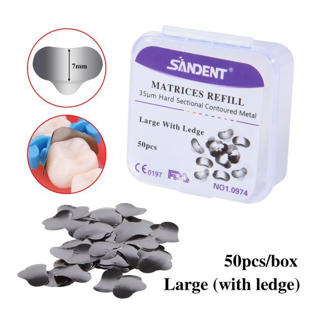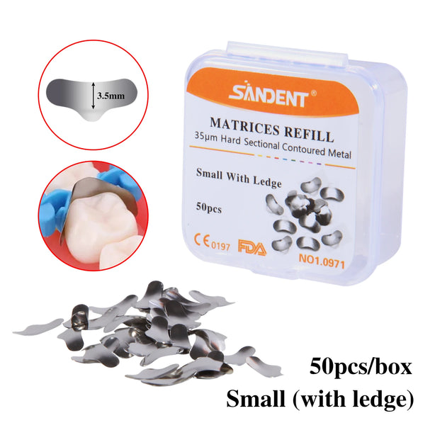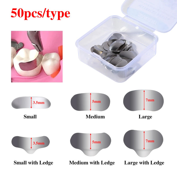 50Pcs Dental Metal Matrices Bands Sectional Contoured Matrix Refill S/M/L Sizes 35μm for Teeth Replacement Dentsit Tools