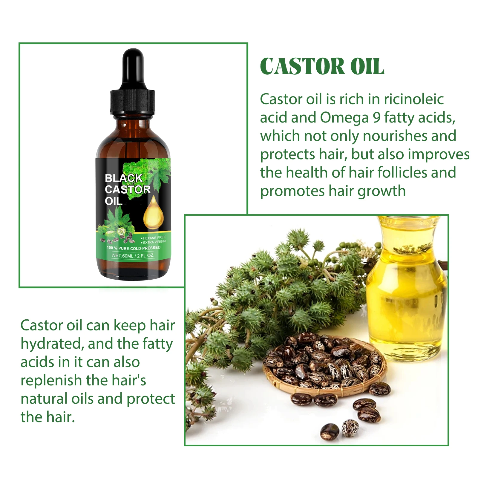Black Castor Oil Nourishes Hair Growth Care Massage Scalp Treatment Baldness Repair Hydrates Liquid Anti Frizz Loss Hair Serum
