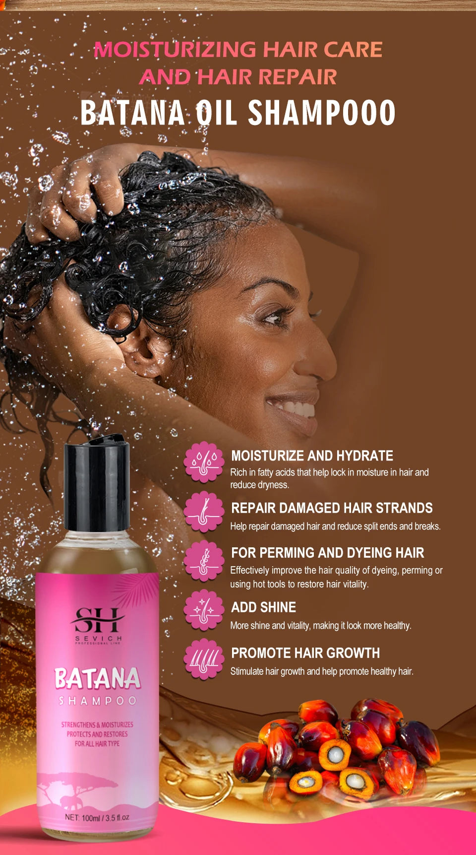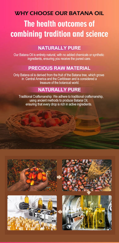 Batana Oil is derived from the fruit of the Burahem Palm tree, which predominantly grows in Central America and the Caribbean region. A treatment oil specially developed for hair that is widely used to improve hair texture, reduce split ends, and enhance hair texture for healthy, beautiful hair. Batana oil has traditionally been used to improve the quality and health of the scalp, repair damaged hair, and reverse hair loss.