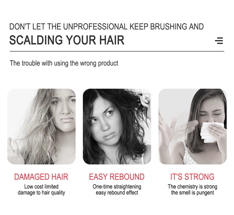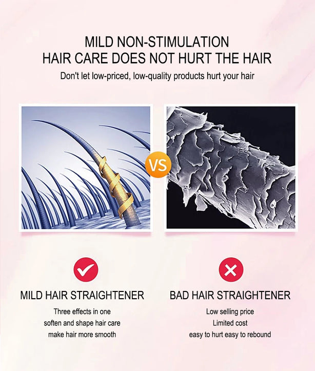 Rich in plant collagen and vitamin E, this product can moisturize hair, strengthen hair dryness, protect hair color and improve natural elasticity of hair, reduce damage degree of hair, fragrance after perm, smooth to the end.It is the best straight hair that you deserve to have 0 damage to hair.