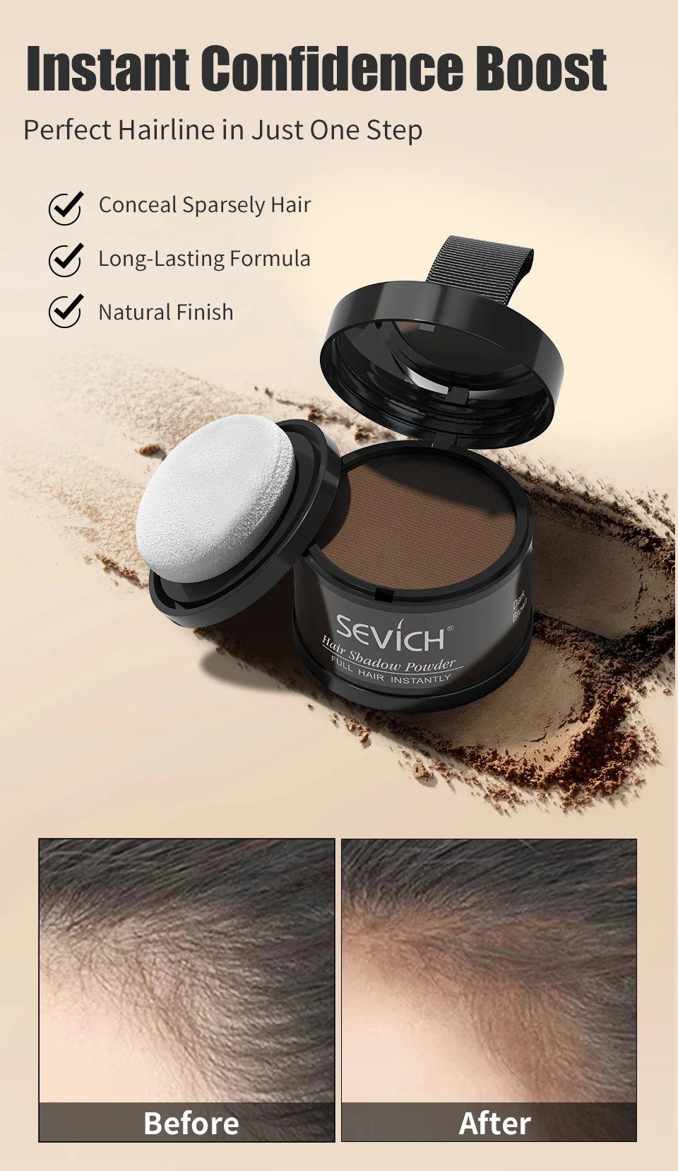 Sevich Hairline Powder Instantly Conceals Hair Loss Root Touch Up Powder Hair Loss Cover Up Hair Shadow Powder Black Hair Fibers