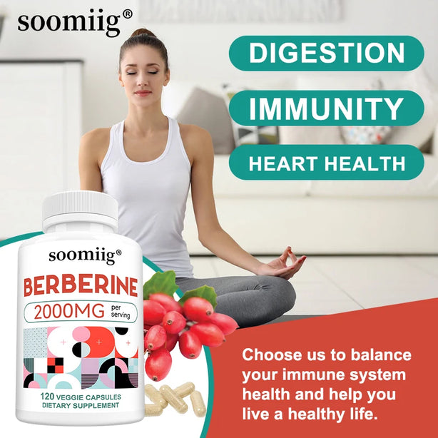 Berberine Supplement Capsules 2000mg - Promotes Digestive Health, Antioxidant, Supports Immune System, Heart Health