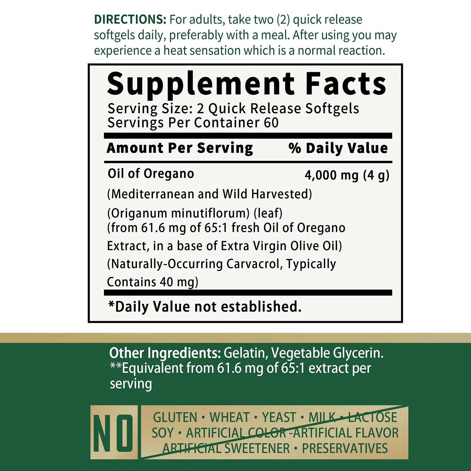 Oil of Oregano - for Digestion, Heart Health, Detoxification and Immune Support - 120 Capsules