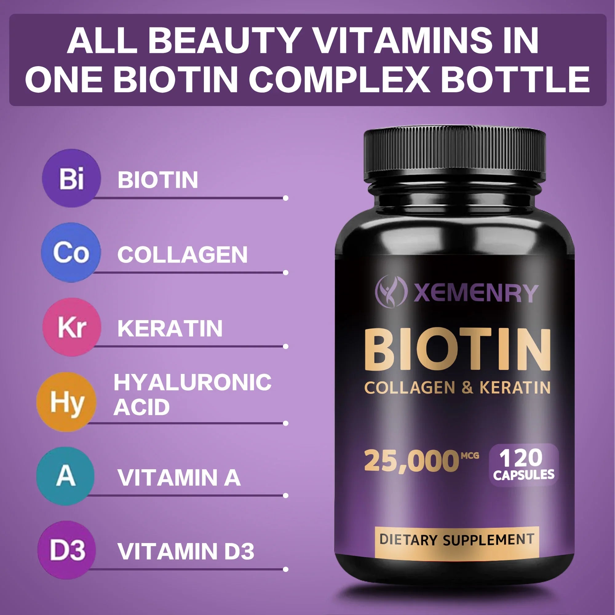 Biotin Supplements with Hyaluronic Acid and Collagen - Biotin supplements contain powerful biotin, collagen, keratin, and other essential nutrients to naturally support your health and beauty. Take two capsules daily with our highly bioavailable formula to promote fast, proper absorption. Take good care of your skin.