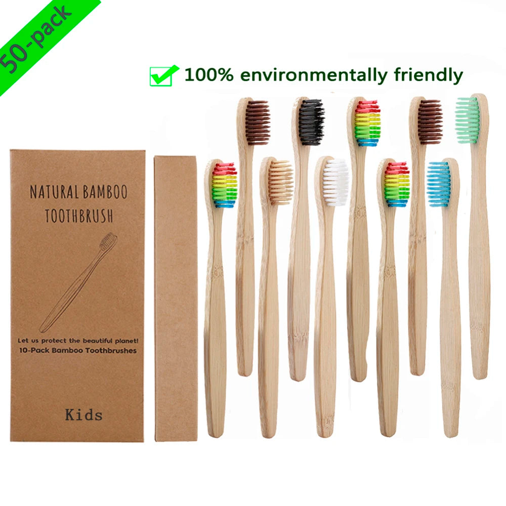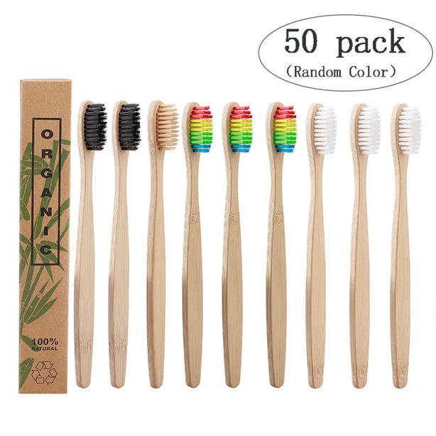 50pcs Natural Bamboo Toothbrush Wood Toothbrushes Soft Bristles Capitellum Fiber Teeth brush Eco-Friendly Oral Tooth Care