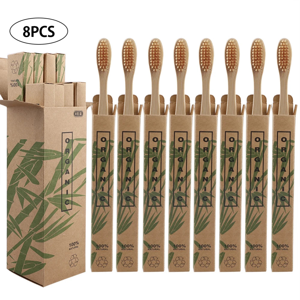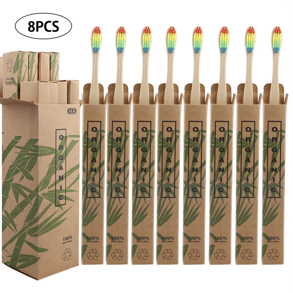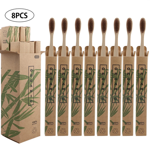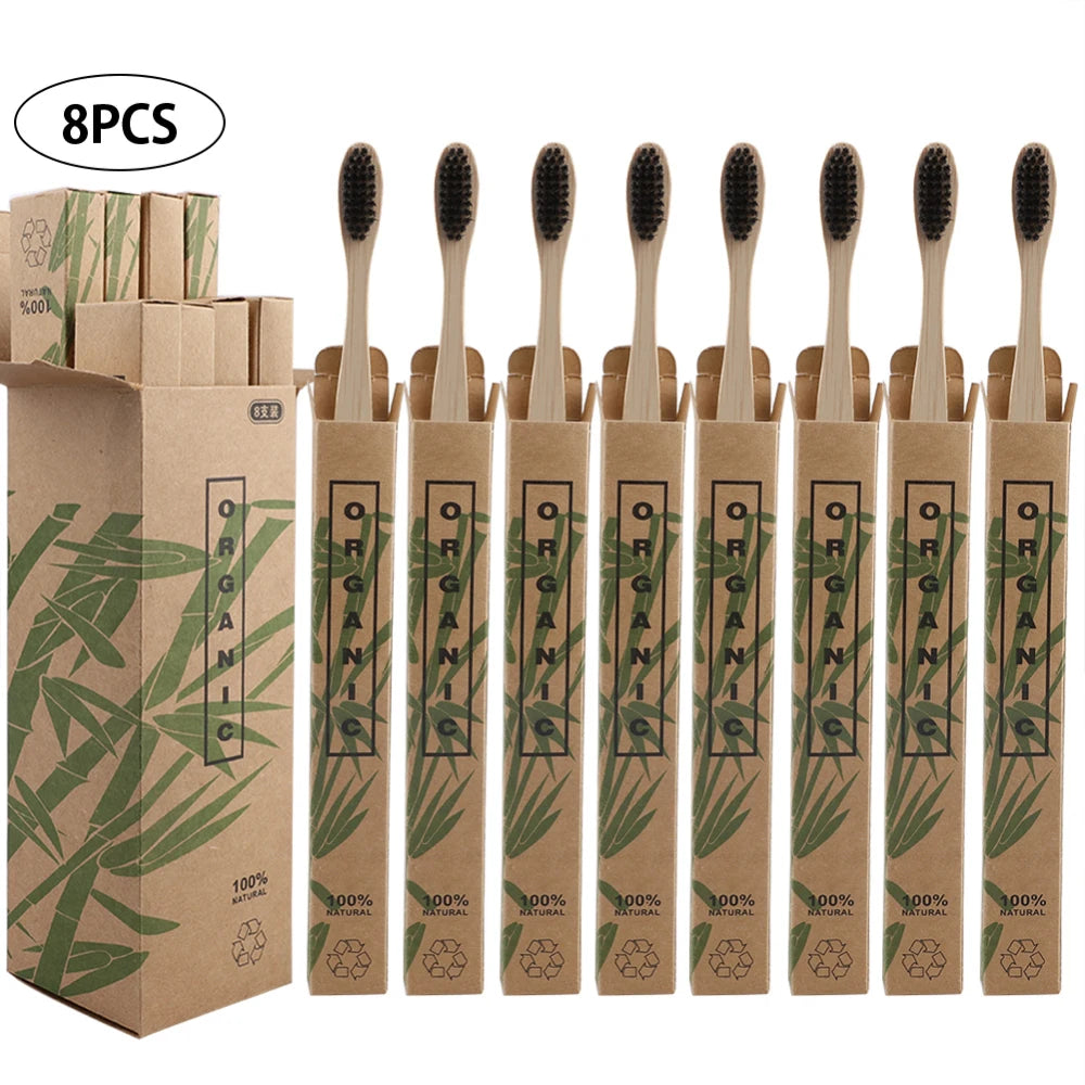 8pcs Travel Eco-friendly Bamboo Wooden Toothbrushes Bristle Oral Tooth Brush Teeth whitening Adult Oral Care