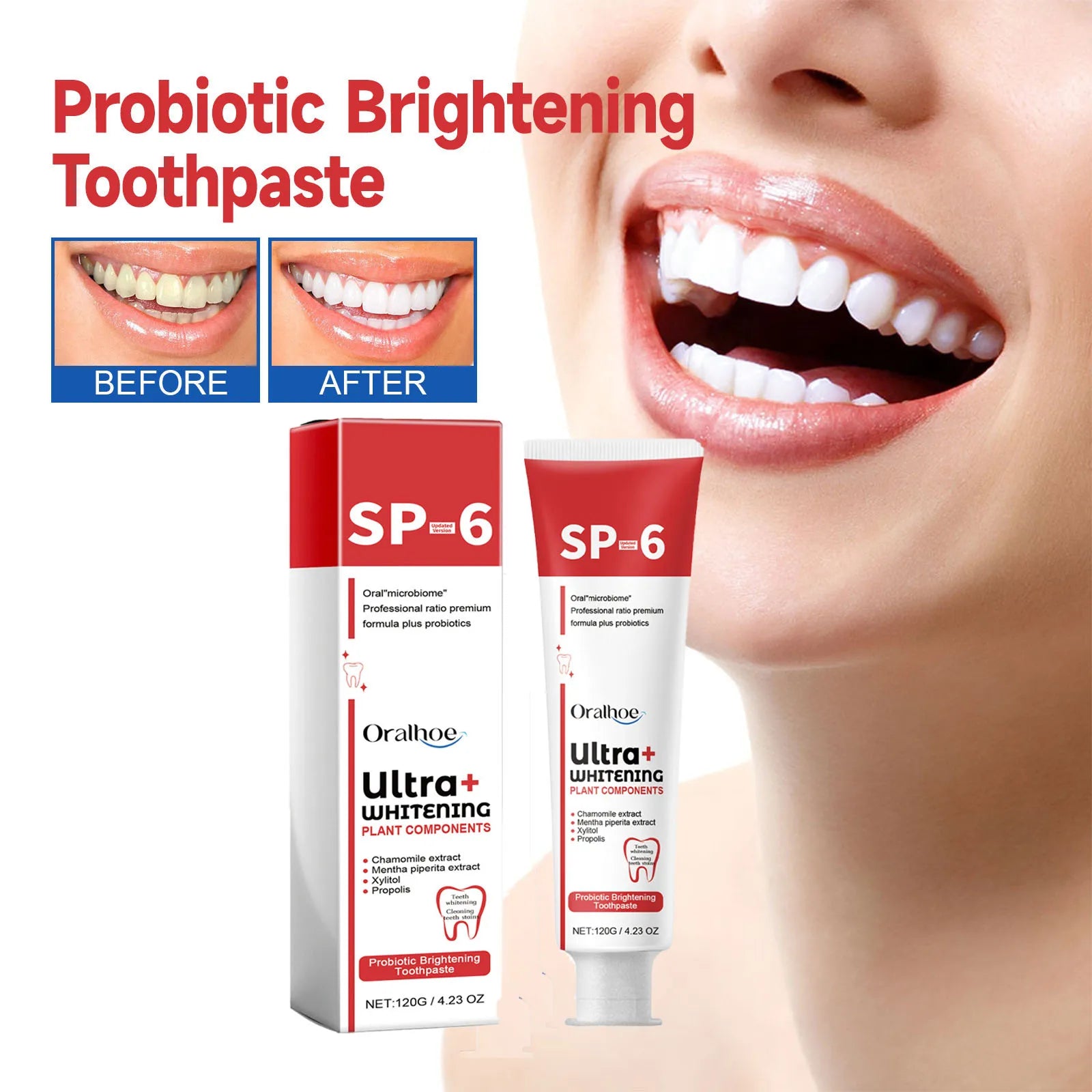 Oralhoe 120g Sp6 Probiotic Brightening Toothpaste Oral Hygiene Clean Fresh Breath Odor Stain Remove Ultra Whitening Toothpaste