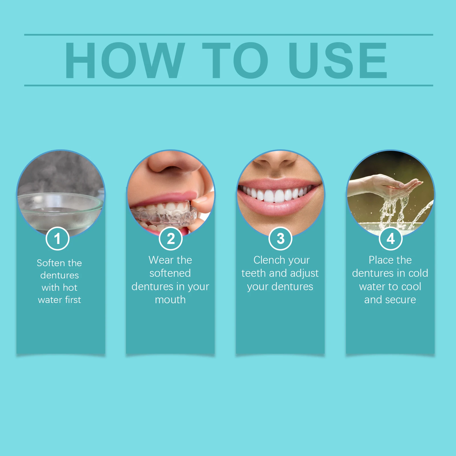 1. Able to fully support teeth, no glue required, just bite on your teeth and you will get a perfect smile immediately.