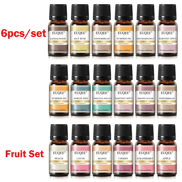 EUQEE 6PCS Aromatherapy Fragrance Oil Gift Set Coffee Fruit Series Essential Oils 10ml Strawberry Cherry Pumpkin Pie Leather