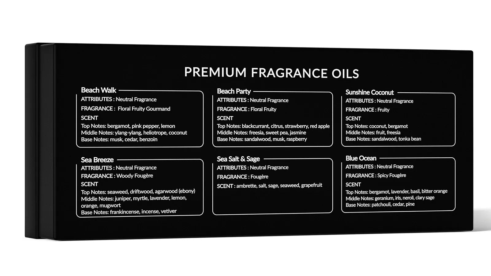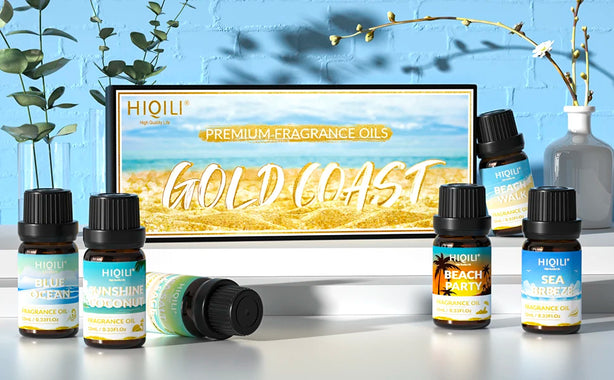 HIQILI Gold Coast Set, TOP 6 PCS Fragrance Oils Gift Set for Aromatherapy Car Home hotel Diffuser Humidifier Candles Making