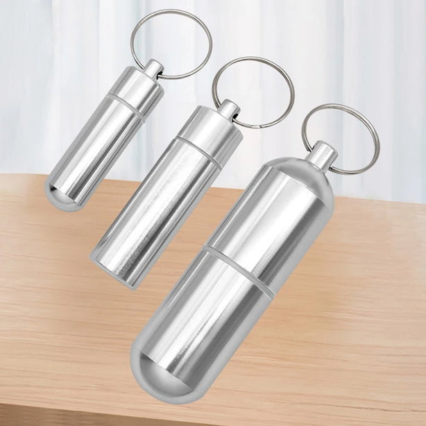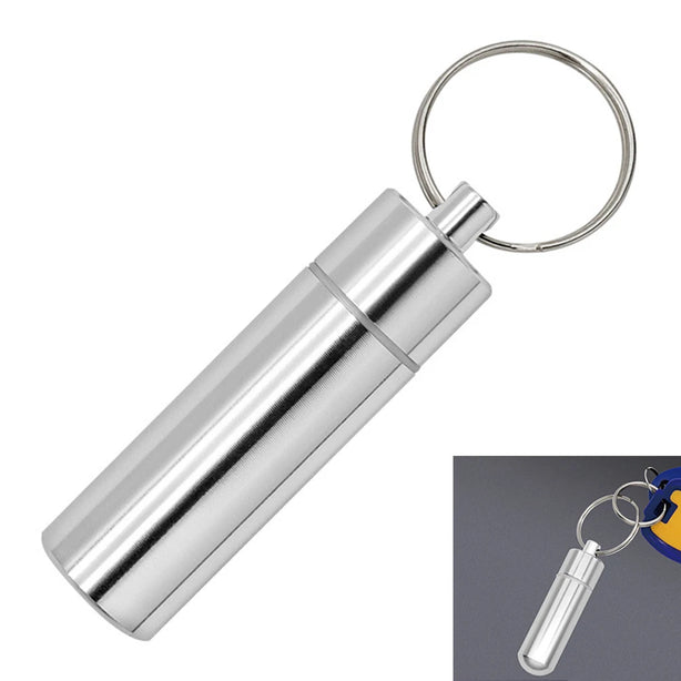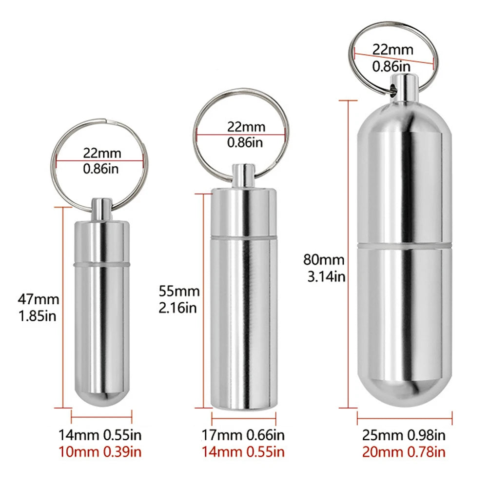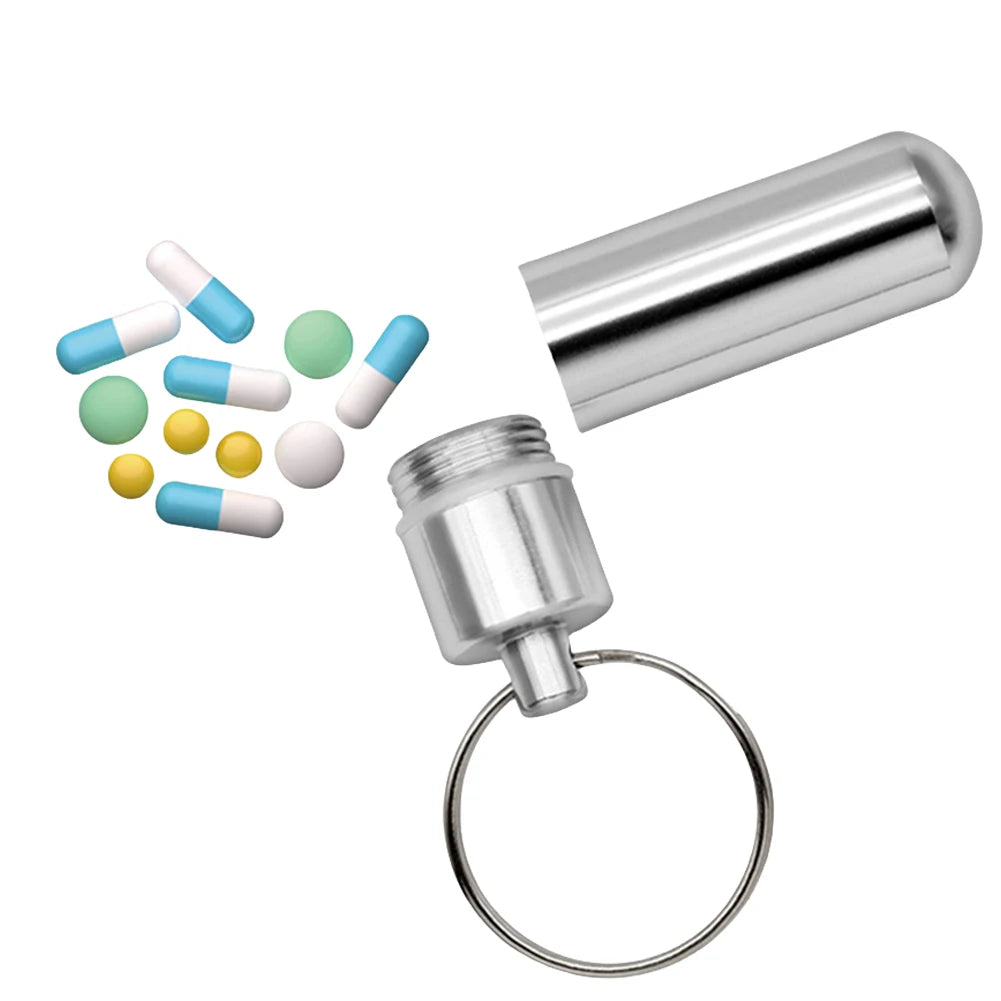 Keychain Pill Box Case Bottle Portable Waterproof Elderly First Aid Pill Case Aluminum Alloy Health Care for Outdoor Travel Camping