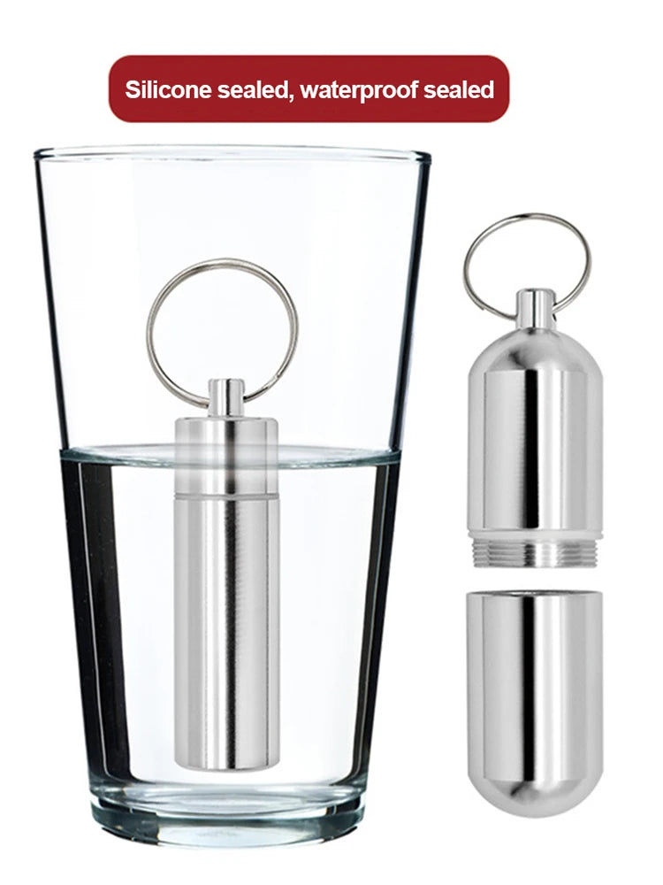 3. Versatile Storage Options: High-precision waterproof O-ring design of pill container enables secure storage of pills, capsules, oral liquids, alcohol pads, matches, outdoor first aid supplies, and more.