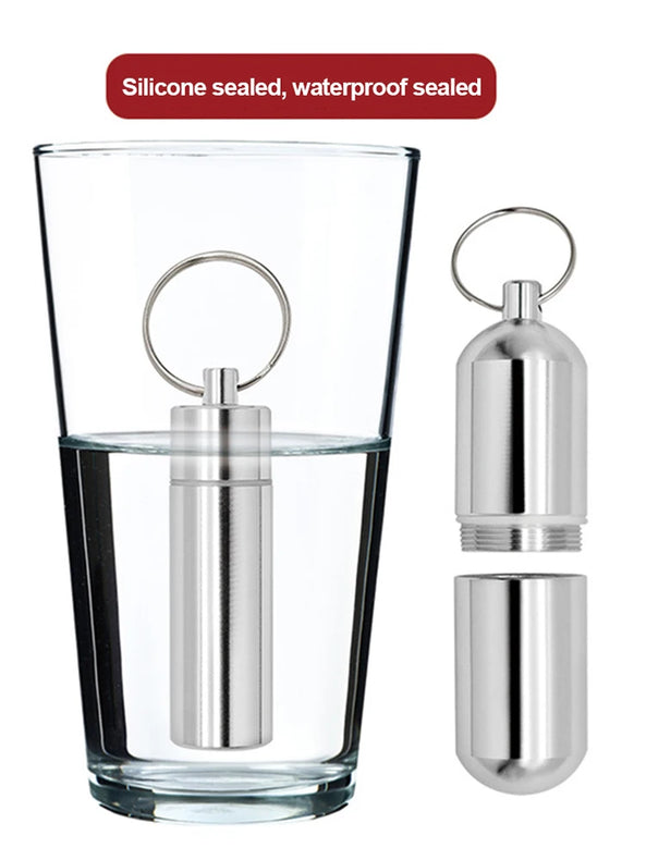 Keychain Medicine Box Portable Waterproof Elderly First Aid Pill Case Aluminum Alloy Health Care for Traveling Camping