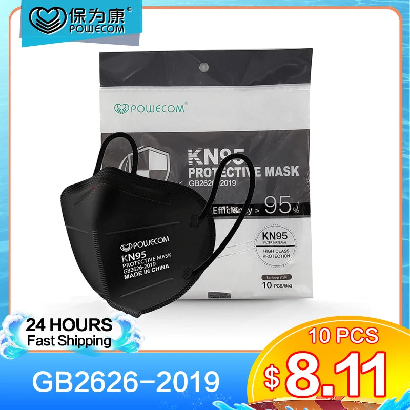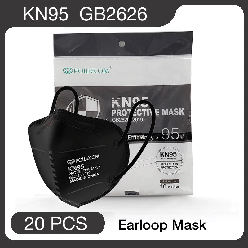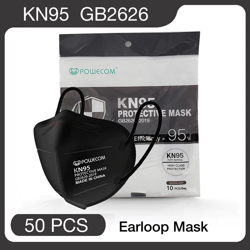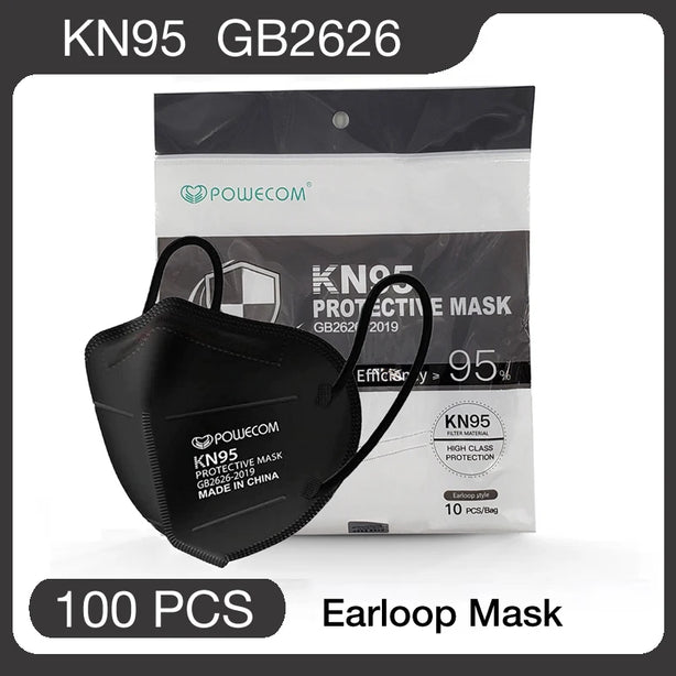 New Powecom Black FFP2 KN95 Mask Filter Face Masks 5 Layer Anti-Pollution Protective Dust Filter Safety Mask GB2626-2019