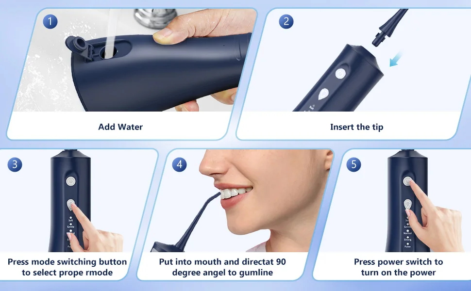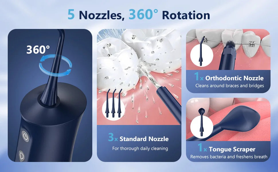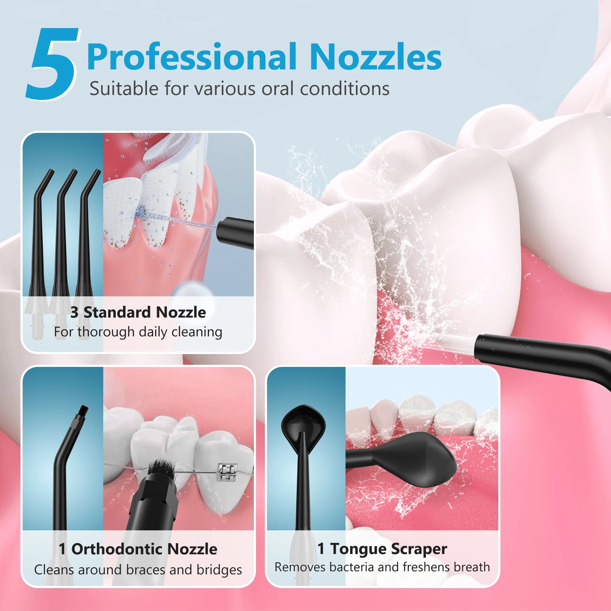 • 5 Modes Water Tank :Choose from 5 different modes to customize your flossing experience and achieve optimal oral health.