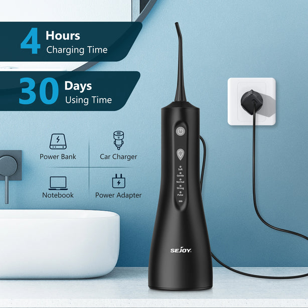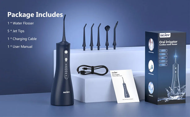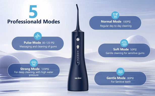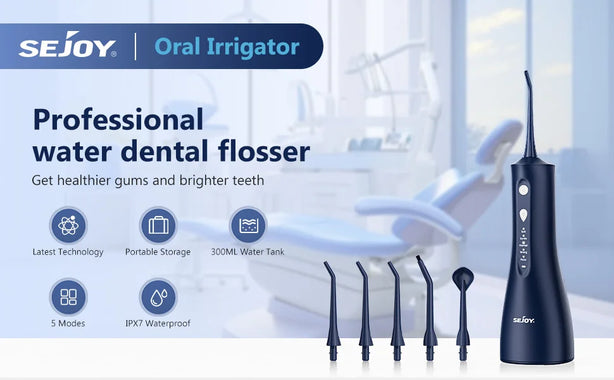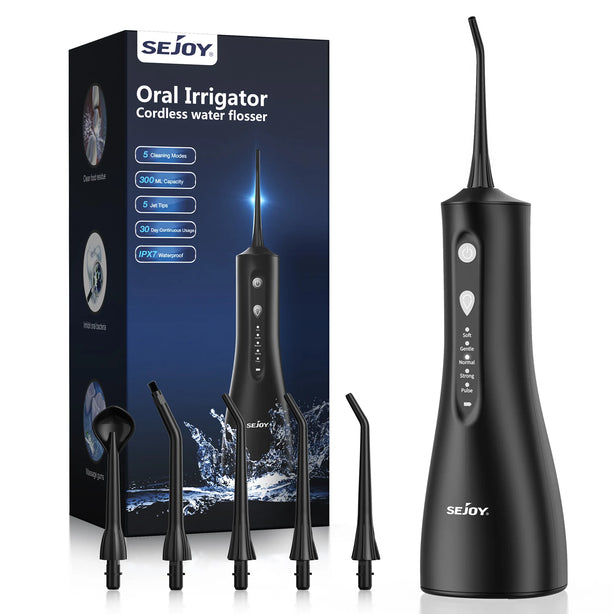 Sejoy Water Dental Flosser Oral Irrigator for Teeth 300ml Water Tank 5 Modes 5 Nozzels Teeth Cleaner Rechargeable Dental Floss